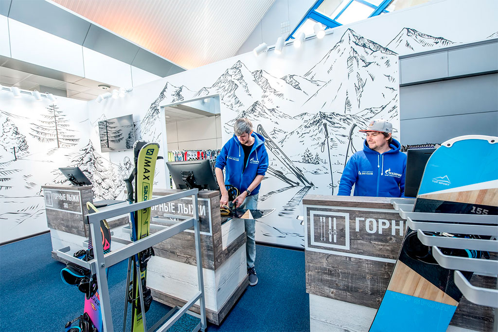 Прокат горнолыжного инвентаря располагается на нижней станции канатных дорог «Лаура». Полная модернизация проката состоялась в 2018-2019 г. В распоряжении гостей курорта: 1000 новых лыжных комплектов и 350 сноубордических комплектов.